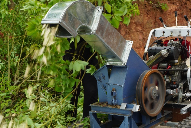 宜賓市敘州區是油樟原生資源地,油樟資源得天獨厚,有全國最大面積的油樟林,樟油產量占全國70%以上,占全球50%左右,是全國保存和發展最好的天然香料油原基地之一,享有“世界樟海,油樟王國”的美譽。但油樟樹林主要分布于山地丘陵地區,農業生產機械化率不足50%,采摘油樟樹枝葉主要依賴人工攀高砍伐,不僅生產效率低下,也存在嚴重的安全隱患。為了助力鄉村振興、促進農民增收、貫徹落實《四川省“十四五”現代農業裝備推進方案(2021-2025)》,孟忠偉教授帶領團隊從調研現實需求、提出解決方案,到設計研發、生產裝配和優化試驗,成功研發出全地形木材粉碎機以及高枝剪、竹剪等配套產品,為油樟樹枝葉的機械砍伐、粉碎和運輸提供了高效便捷的解決方案,大幅提高了采摘效率,同時也縮短了生產廠商的工藝流程,從根本上解決了制約油樟產業發展的難題,不僅為當地油樟產業注入了新的發展動力,也有效地推進了農業生產的現代化進程。