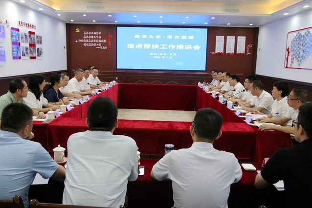 上午10:00,西華大學·南充嘉陵定點幫扶工作推進會在龍蟠鎮政府會議室召開。嘉陵區區委書記張青松、區委副書記鐘源、區政府副區長蘇長龍,校黨委書記劉樹根、副校長劉小兵出席會議。學校相關部門負責人、嘉陵區相關部門主要負責人、龍蟠鎮黨委和政府主要負責人,駐村干部雷云中、牟志強,以及學校選派的駐村幫扶干部,汽車與交通學院宜賓校區團委副書記、學生黨支部書記、駐村第一書記刁成豆,計算機與軟件工程學院輔導員、學生黨支部書記、幫扶干部池炳良參加會議。