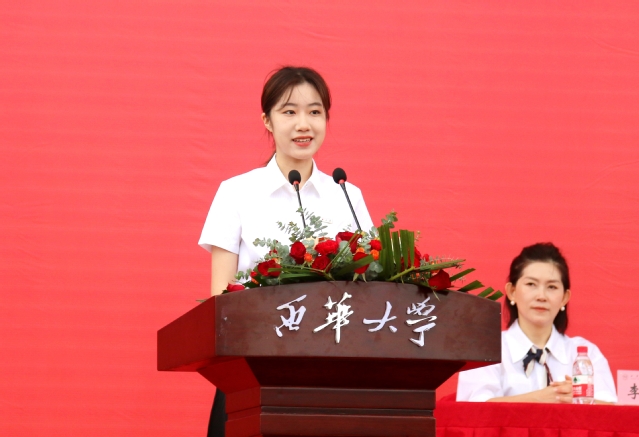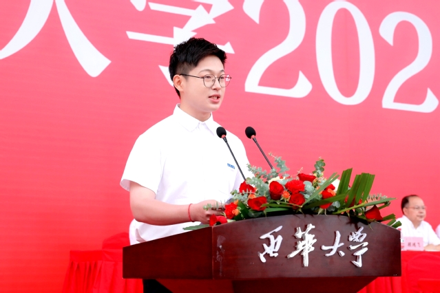 “規劃好你的大學生涯,從轉變你的學習方式開始。”教師代表、材料科學與工程學院彭必友教授在發言中勉勵新同學,要勤學善思,從被動學習向自主學習轉變;要博學善問,從低階淺層學習向探究性高階學習轉變;要勤學篤行,從學知識向能力提升轉變。他表示,大學的學習方式是多樣化的,需要通過不斷嘗試、不斷探索來發現適合自己的學習方式,希望同學們珍惜時光,把握機會,樹立遠大的理想和抱負,不負韶華,用不斷進步來回報親人,用優異的成績和健康的成長讓西華大學更加精彩。