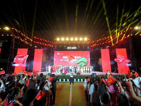 四川經濟在線成都10月16日訊 10月14日晚,在聲聲倒計時中,“強國有我,青春有為”——第十六屆西華秋韻迎新文藝晚會在西華大學臨江運動場拉開序幕。本屆西華秋韻分設成都和宜賓兩個會場,兩個會場同時演出,實時共享。精心打磨的節目在燈光下熠熠生輝,演員們熱情洋溢的笑容感染著線上線下每一位觀眾。