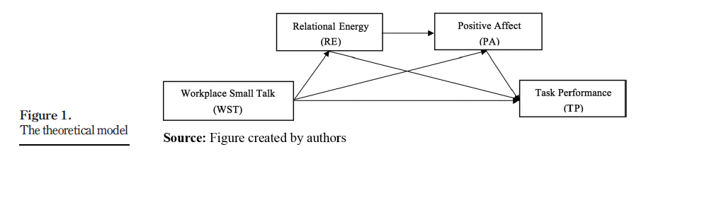 該研究聚焦于中國組織情景工作場所閑聊現象(WST),深入探討了工作場所閑聊對中國員工任務績效的影響,并探索了關系能量(RE)和積極情感(PA)在其中的中介作用。研究采用定量研究方法,通過兩個時點進行線上問卷調查來收集數據(N = 516)。采用層次回歸法和Bootstrap法對這些數據進行統計分析,以檢驗提出的假設。
