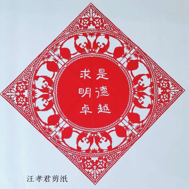 幼年時,汪孝君就喜歡看媽媽用煙盒里的那層錫紙來剪一些簡單的圖案,然后貼在墻上。受到媽媽影響,汪孝君從2007年開始買書自學剪紙。“工作之余的時間,我幾乎都用來剪紙了?!蓖粜⒕f。慢慢的,她從“業余選手”發展成為“剪紙能手”。