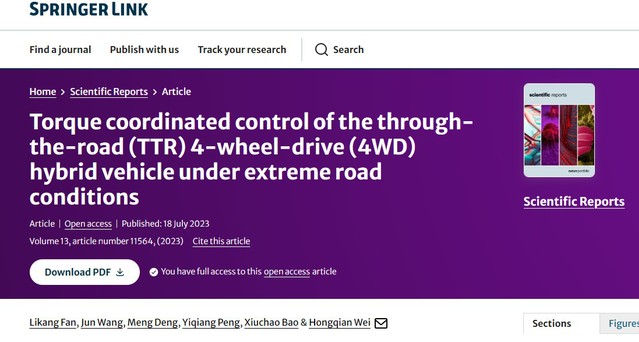 基于硬件再環平臺,研究者繼續探究了四驅混合動力在極端路況下的穩定性策略,并提出了可在線運行的協調控制策略。該策略考慮了多環境、多影響因素下的最佳扭矩分配,保證了整車始終工作在最佳的運動狀態。相關論文已發表在《Scientific Reports》上,第一作者為樊利康博士。