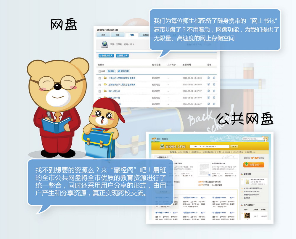 ????? 易班擁有非常強大的班級功能。每個進入西華大學易班的同學都能找到自己相對應的班級,輔導員同時也是班級的管理員,師生們可以在“話題”中發布通知、決策事務、征求意見、尋求幫助、開展活動,也能在此發布投票、評選班委等。 ?????? 在個人主頁,同學們可以實時掌握好友和班級動態,可以收到學校、學院、老師發來的通知,可以定制社團、興趣組織的信息,可以寫博客、傳照片、在網盤上共享資源,甚至和其他師生玩游戲。 ????? “易班”是上海市教衛黨委按照教育部建立大學生網絡互動社區的要求,依托上海市教育系統網絡文化發展研究中心,從2009年開始自主研發的網絡文化建設項目。 ????? 經過近3年的發展,“易班”已經覆蓋上海44所高校,實名注冊用戶超過46萬,共建班級1.9萬個,日均動態數1500萬。上海“易班”建設得到了胡錦濤、李長春、劉云山、劉延東等中央領導同志和上海市委書記俞正聲等領導的批示,各級領導充分肯定了“易班”為大學生提供的在線交流、資源共享、網絡文化活動的平臺作用,并要求對“易班”進行大力支持,并逐漸覆蓋更多高校,發揮更大作用。 ??????? ????????????????????????????????????????????????? 為什么要建易班? ?????? ????? 近年來,學校黨委一直在探索研究如何加強網絡文化建設。學校先后組織人員于2010年、2011年兩次到上海等高校調研,對“易班”的設計思路、建設方法、研發技術、政策支持進行全面了解。 ????? 在認真聽取調研匯報基礎上,4月18日,學校黨委常委會研究決定,學習上海市教委和上海高校的先進經驗,建設西華大學易班。我校的易班建設得到了上海市教衛黨委、四川省教育廳的大力支持,上海市易班發展中心表示將向我校無償提供技術支持。 ?????? 4月25日,學校相關單位召開了西華大學易班建設籌備工作會。會議討論了《西華大學易班建設工作方案(討論稿)》,《方案》主要涉及西華易班建設的組織機構、建設目標、工作步驟等內容。會議決定,學校將組建易班建設領導小組、易班發展中心和易班學生工作站。 ???? 為了順利推進易班建設,我校在上海易班發展中心的指導下,于4月28日開始試用易班。目前人文學院、電氣信息學院、建筑與土木工程學院的部分班級已經注冊成為易班成員。“五一”期間,黨委宣傳部、學生工作部對試點班級的使用情況和存在的問題進行了搜集匯總,并及時向上海易班發展中心反饋。 ????? 5月4日上午,西華大學易班建設培訓會在行政樓報告廳舉行。上海教育系統網絡文化發展研究中心常務副主任朱明倫、上海易班發展中心主任助理陳倩、運維總監吳文越、技術研發工程師賈磊專程來到我校,就“易班”建設的背景、功能、操作流程以及發展趨勢作了詳細介紹。校黨委副書記王小林代表學校對朱明倫主任一行表示熱烈的歡迎,并就易班建設提出了要求。校黨委宣傳部部長張力、校學生工作部部長徐元彬就西華大學易班建設的背景、前期準備情況和要求作了介紹。 ????? 為了方便我校師生安全、快捷、免費使用西華大學易班,經過學校和移動公司、上海教育系統網絡文化發展研究中心協調,我校將建立校內鏡像服務器,實現在校師生免費登錄、使用西華大學易班。目前,西華大學易班的登陸主頁已經建設完成,后臺建設已基本完成,正式面向全校師生開通。 ??????? ??????????????????????????????????????????????????????? 怎么玩轉易班? ??????? ????? 只需點擊http://eclass.xhu.edu.cn/,注冊進入,完善個人資料通過校方驗證,找到自己的班級,你就可以輕松玩轉易班! ????? 在這里,你可以通過微博和博客記錄下生活點滴,與朋友分享喜怒哀樂。 ????? 在這里,你可以發帖與來自五湖四海的朋友談天說地。 ????? 在這里,你可以通過易班無限量的永久相冊功能,記錄下美好的大學時光與同學分享。 ????? 在這里,你可以通過易班 “群組”,根據個人的興趣愛好加入網上興趣小組、網上社團,與志同道合的朋友聚集到一起。 ????? 在這里,你可以通過易班 “網盤”,獲得無限量、高速的網上存儲空間,可以將資料存入網盤與其他高校師生分享。 ???? ?在這里,通過易班 “通訊錄”功能,加入班級后,你可以隨時更新自己的電話和郵箱,這樣畢業多年,也還能和同學保持聯系。 ????? 在這里,你還可以通過易班 “im即時通訊”功能,與好友在線聊天,并異地備份聊天記錄。 ???? 在這里,老師可以通過易班短信將通知信息群發到班級同學的手機上。而且,“掌上易班”即將開通,到時候通過手機可以隨時登陸易班。 ????? …… ??? 同學們,易班來了,你們準備好了嗎? 易班功能介紹圖(一) 易班功能介紹圖(二) 易班功能介紹圖(三) 易班功能介紹圖(四) 易班功能介紹圖(五) 易班功能介紹圖(六)