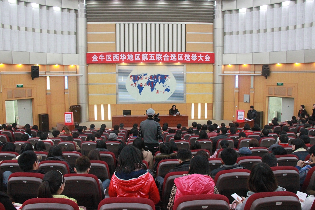 ????? 今天是第六屆金牛區人大代表選舉的投票日。由西華大學及西華大學社區居委會組成“西華地區第五聯合選區”,在按照法定程序認真完成宣傳發動、選民登記、張榜公示、候選人公布,以及工作人員培訓、會場布置等準備工作的基礎之上,順利舉行了金牛區西華地區第五聯合選區選舉大會。大會分主會場和27個投票站同時進行。全選區3萬余名選民參加了選舉大會,各位選民將從3名正式候選人中選出2名區人大代表。 ????? 中午12:40,金牛區西華地區第五聯合選區選舉大會(主會場)在四教報告廳如期舉行,機關第一黨總支和鳳凰學院的全體選民參加了主會場的選舉大會。在大會執行主席宣讀了投票的各項要求之后,與會選民井然有序地領取選票并認真填寫,最后投上了自己神圣的一票。會場工作人員嚴格按照法定要求,認真計票、監票。整個選舉過程嚴格遵守選舉紀律,做到了真實、民主和公正。 ???? 據悉,選舉結果將按法定程序予以公布。 金牛區西華地區第五聯合選區選舉大會主會場 投下神圣的一票 選民依次投票 求是廣場的選舉宣傳橫幅 |