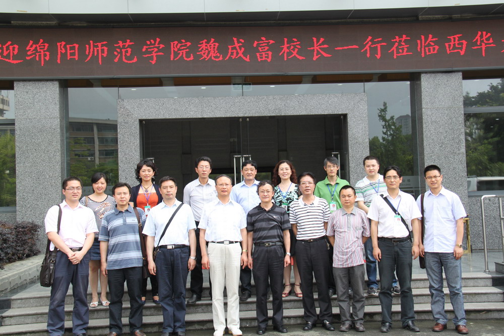 ????? 5月11日下午,綿陽師范學院魏成富校長帶領學校黨委辦公室、校長辦公室主任彭軍,人事處處長唐再良,圖書館館長龔勝泉等部門負責人一行到我校考察交流。校長孫衛國,副校長李勁松,校長辦公室主任費凌、人事處處長楊偉、圖書館館長呂先競等相關部門負責人參加了在行政樓412會議室舉行的座談交流會。副校長李勁松主持座談會。
