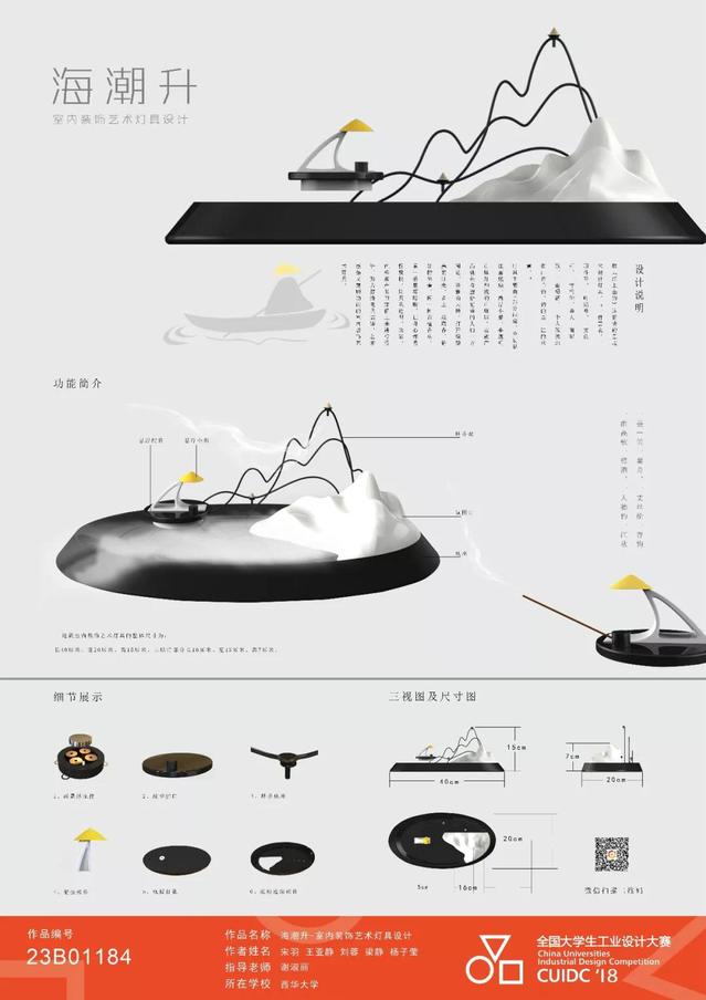 其中,由美術與設計學院工業設計系2014級學生展云龍完成的《剪叉式升降機的造型設計》等24件作品獲得省賽一等獎,由美術與設計學院工業設計系2014級學生楊蕾完成的《竹編工藝燈設計》等5件作品獲得省賽二等獎。美術與設計學院教師張玉萍、魏國、李紹軍、孟凱寧、王崇東、左怡、李恒全、武月琴、陳文雯、李娟獲優秀指導教師獎。