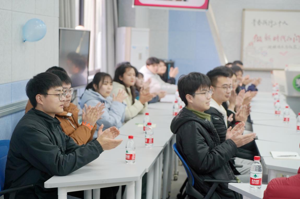 在輔導員陳藝丹的帶領下,與會師生共同學習了黨的二十大報告中關于青年和就業的有關論述,“作為新時代青年,要有理想、敢擔當、能吃苦、肯奮斗,并朝著這個方向不斷地完善自身,成為國家需要的人才。”陳藝丹鼓勵班級同學抓住時代機遇努力拼搏,并結合班級同學畢業去向意向、近三年專業畢業去向落實情況和就業情況等數據分析,激發學生的奮斗之志。